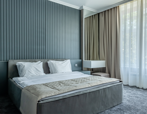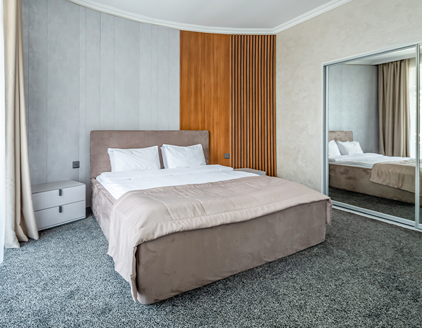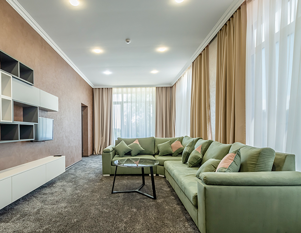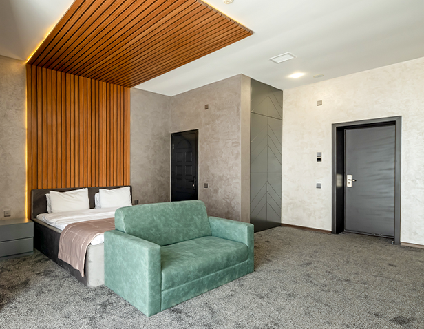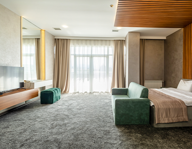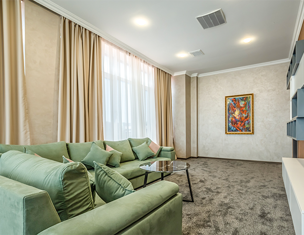 - Ümumi ölçüsü 120 m2-lik otaq; - 2 nəfərlik çarpayı (180x200 sm); - Qonaq otağı - SMART TV; - Mini-bar; - Duş kabini; - Hamam otağı; - Şəxsi gigiyena vasitələri.